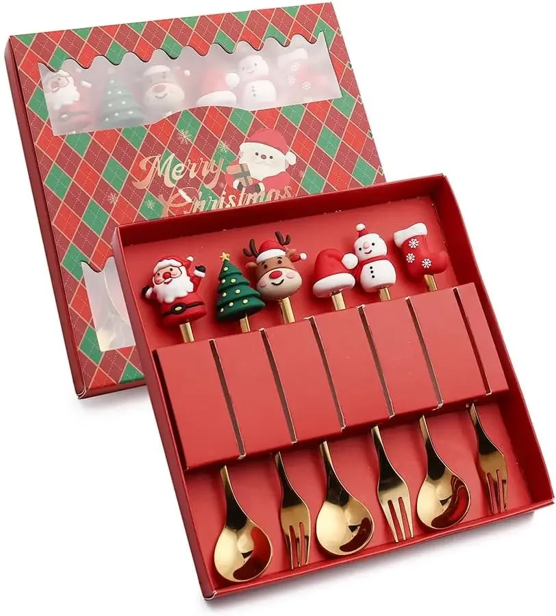 Practical packaging: each set contains 6 Christmas spoons and forks packed in an attractive box..With a length of 6 inches, these utensils are suitable for home, office, bars and restaurants, making them ideal for buffets and banquets.
