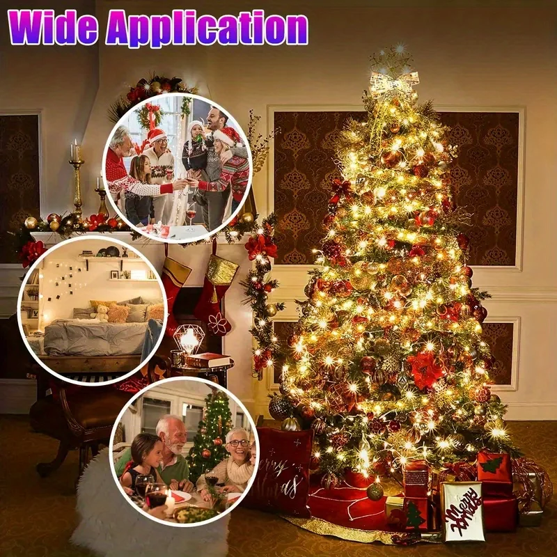 Christmas Ribbon Fairy Lights Golden Lighted Ribbon Garland Warm White LED for Christmas Tree Indoor Party Decoration