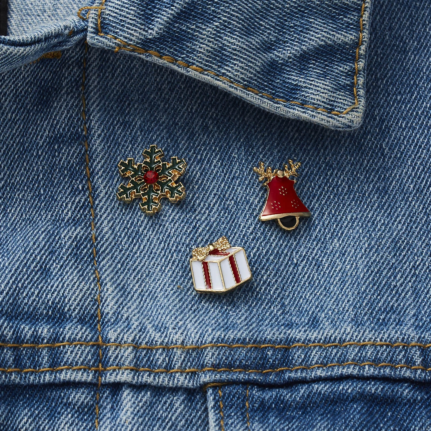 Cute 3 Pcs/Set Cartoon Christmas Brooch Set Pin Tree Santa Claus Elk Collar Lapel Badge Women Kids Gift