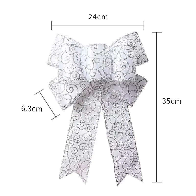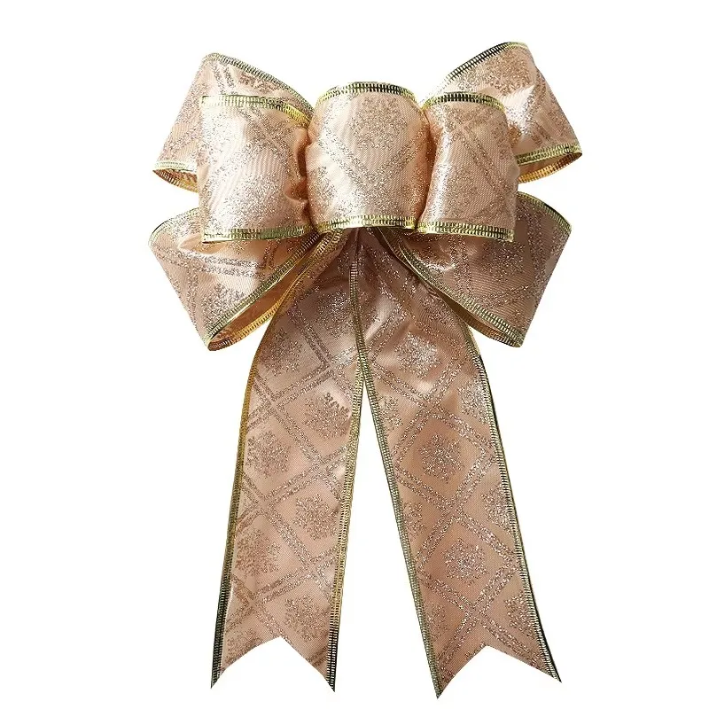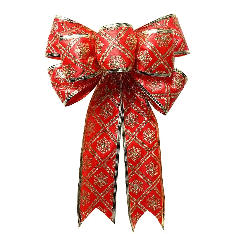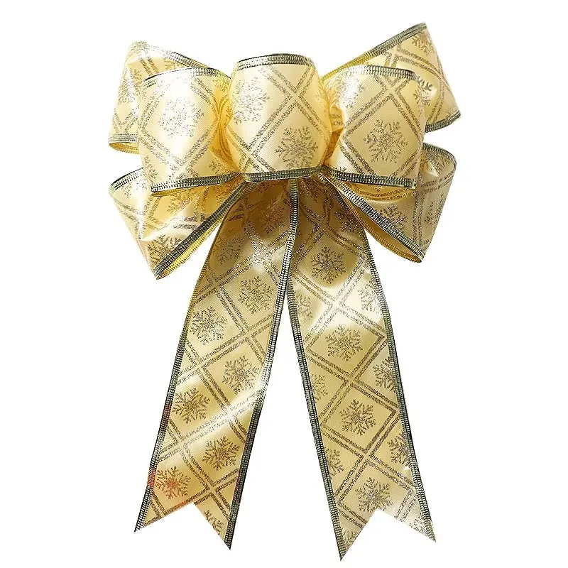 New 35×24cm Now Knot Snowflake Plaid Bow Knot Christmas Tree Decoration Holiday Atmosphere Large Gold Border Bow Knot Gift Decor