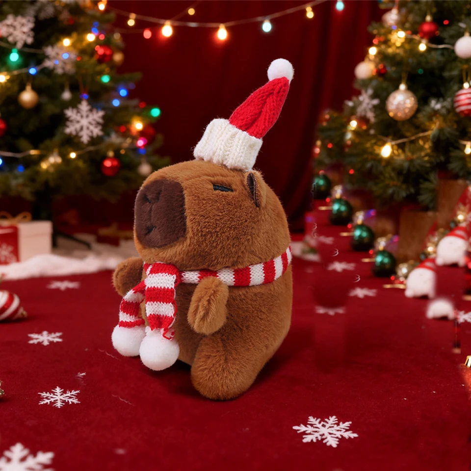 ZAKOL New Cute Christmas Hat Capybara Pendant Plush Toy Doll Keychain Kapila Bag Hanging Ornaments Christmas New Year Gift